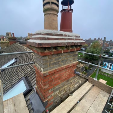 Secure access scaffolding for chimney repairs, repointing and removal works.