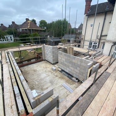Safe, stable scaffolding to support house extensions and structural building works.